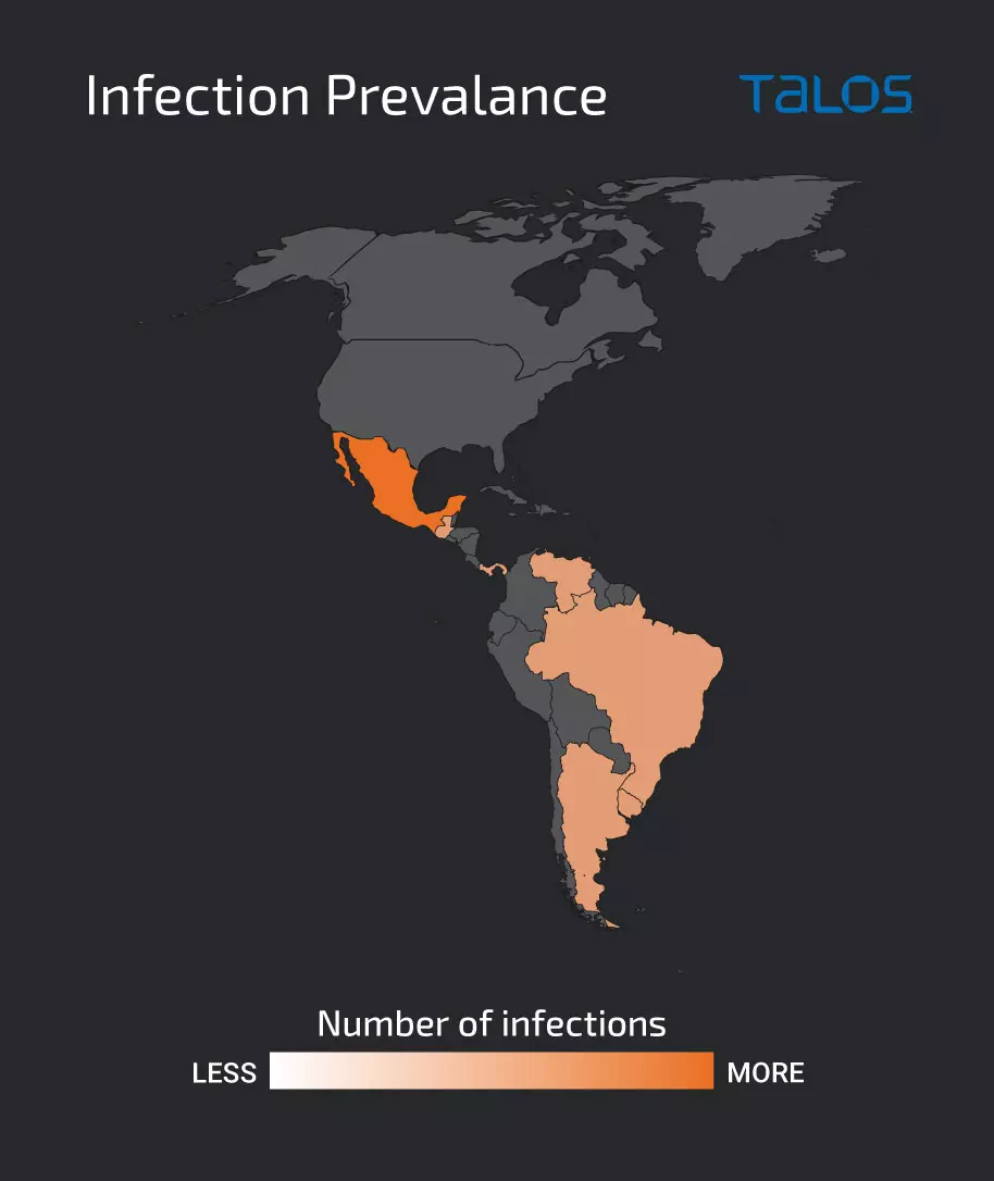 Los ataques se dirigen principalmente a usuarios en México, con algunas infecciones en Uruguay, Brasil, Venezuela, Argentina, Guatemala y Panamá.