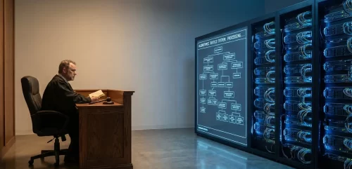 La sala del tribunal contemporáneo, otrora un bastión sagrado de la verdad factual y la deliberación humana, se encuentra hoy asediada por una fuerza ontológica que amenaza con desmantelar su propia esencia.